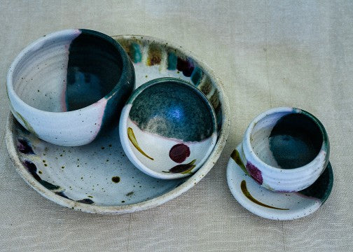 It is a joy to share my passion for ceramics and the firing process with you. My journey with ceramics spans almost two decades and never ceases to fascinate, challenge and inspire me. I make small batches of wheel thrown work, and one of a kind pieces, at my home studio in rural Grass Valley, California. Everything is fired at high temperature either in my propane kiln, or in Japanese style wood burning kilns, and is dishwasher and microwave safe. I participate in various Art Fairs throughout northern California throughout the year, and truly enjoy the personal interaction with my customers. I am also open to commissions, if we share a vision for a project. Please enjoy and feel free to contact me with any questions here or on IG @saskiaceramics. Thank you!